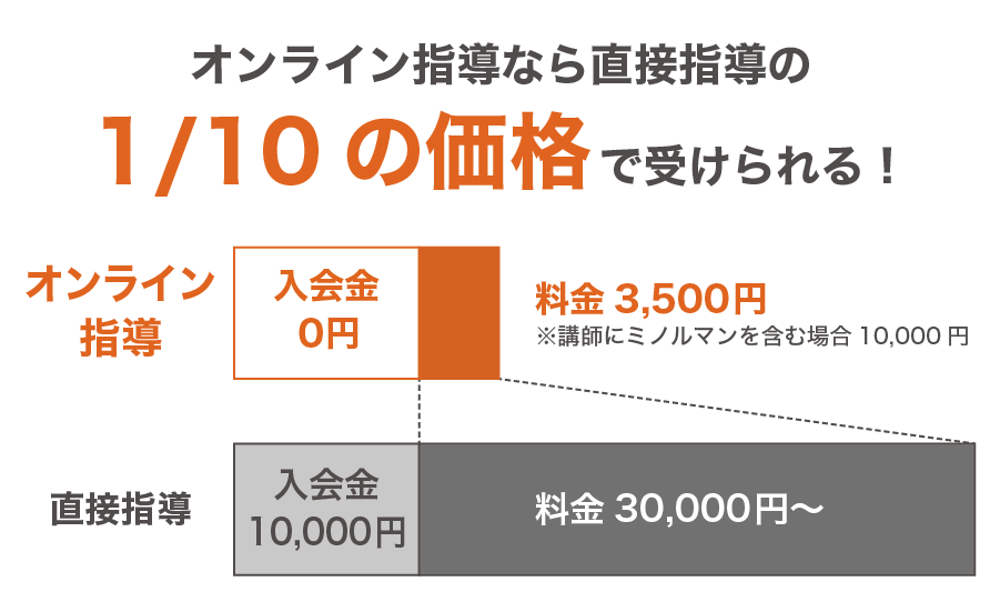 ※直接指導は野球スクールの月4回のレッスンを想定し、月額換算。(自社調べ)